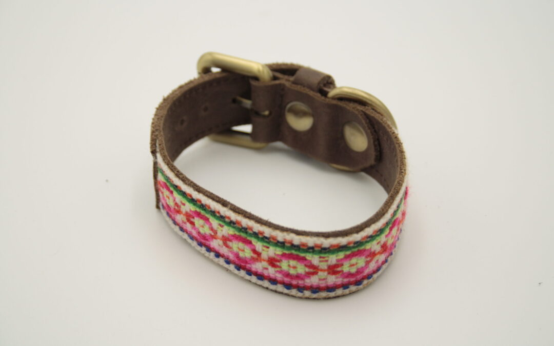 Boho Hundehalsband aus antikem peruanischem Textil – [Rosa/Grün]