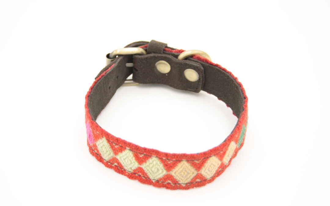 Boho Hundehalsband aus antikem peruanischem Textil – [Rot/Beige]