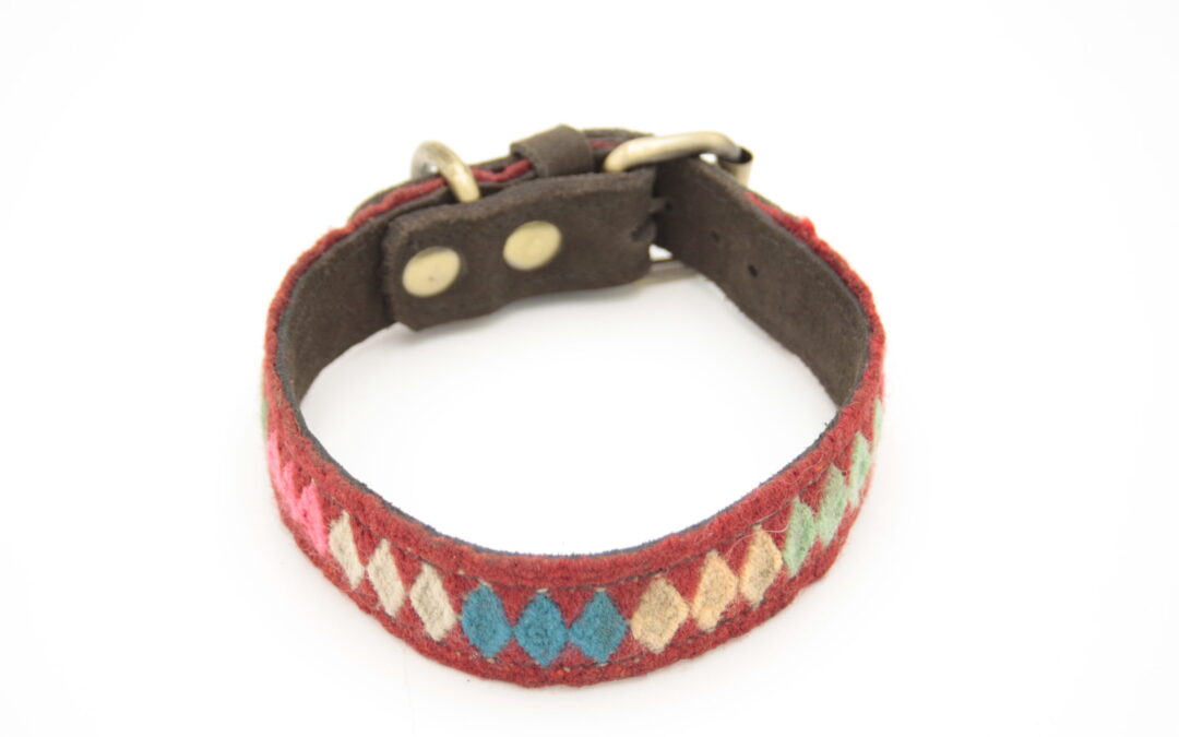 Boho Hundehalsband aus antikem peruanischem Textil – [Dunkelrot]