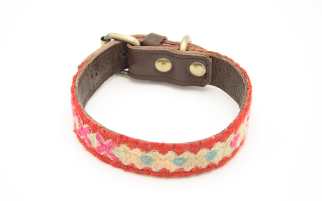 Boho Hundehalsband aus antikem peruanischem Textil – [Rot]