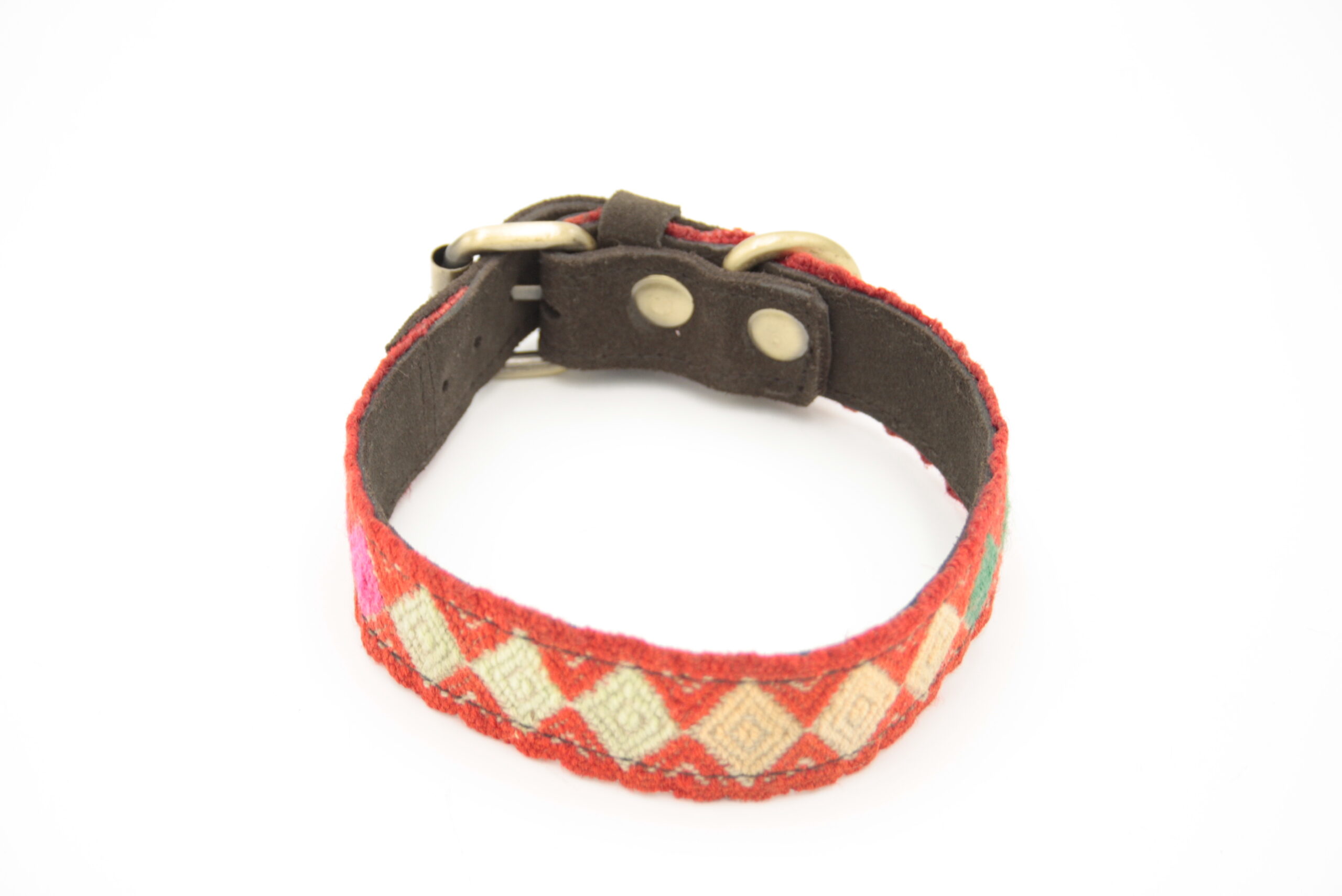 Boho Hundehalsband – Antikes Textil aus Peru [Rot/Beige] (M)