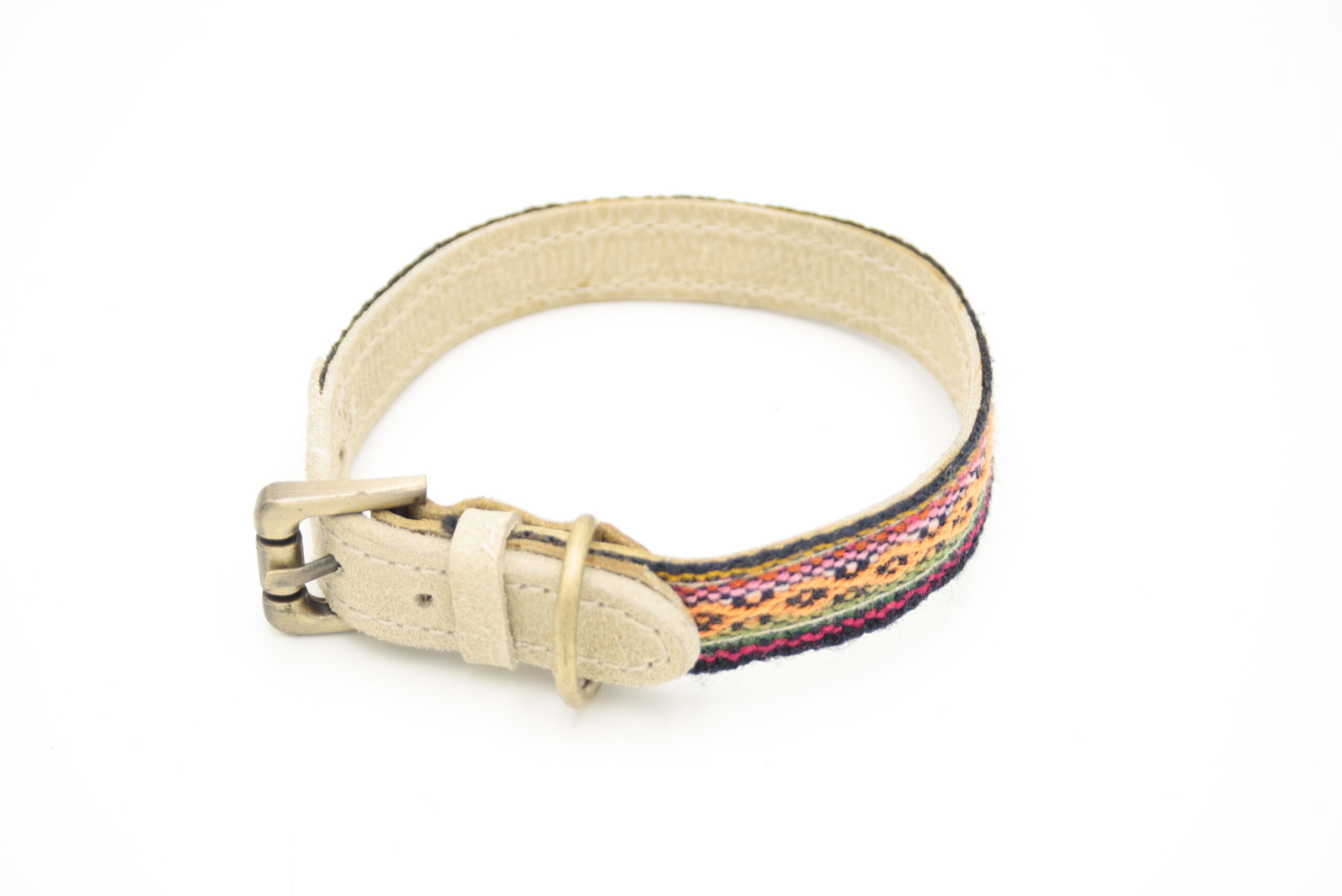 Boho Hundehalsband aus antikem handgewebtem Wolltextil aus Peru, auf Leder verarbeitet und mit antiken Messingbeschlägen kombiniert. Jedes Stück ist ein individuelles Einzelstück.