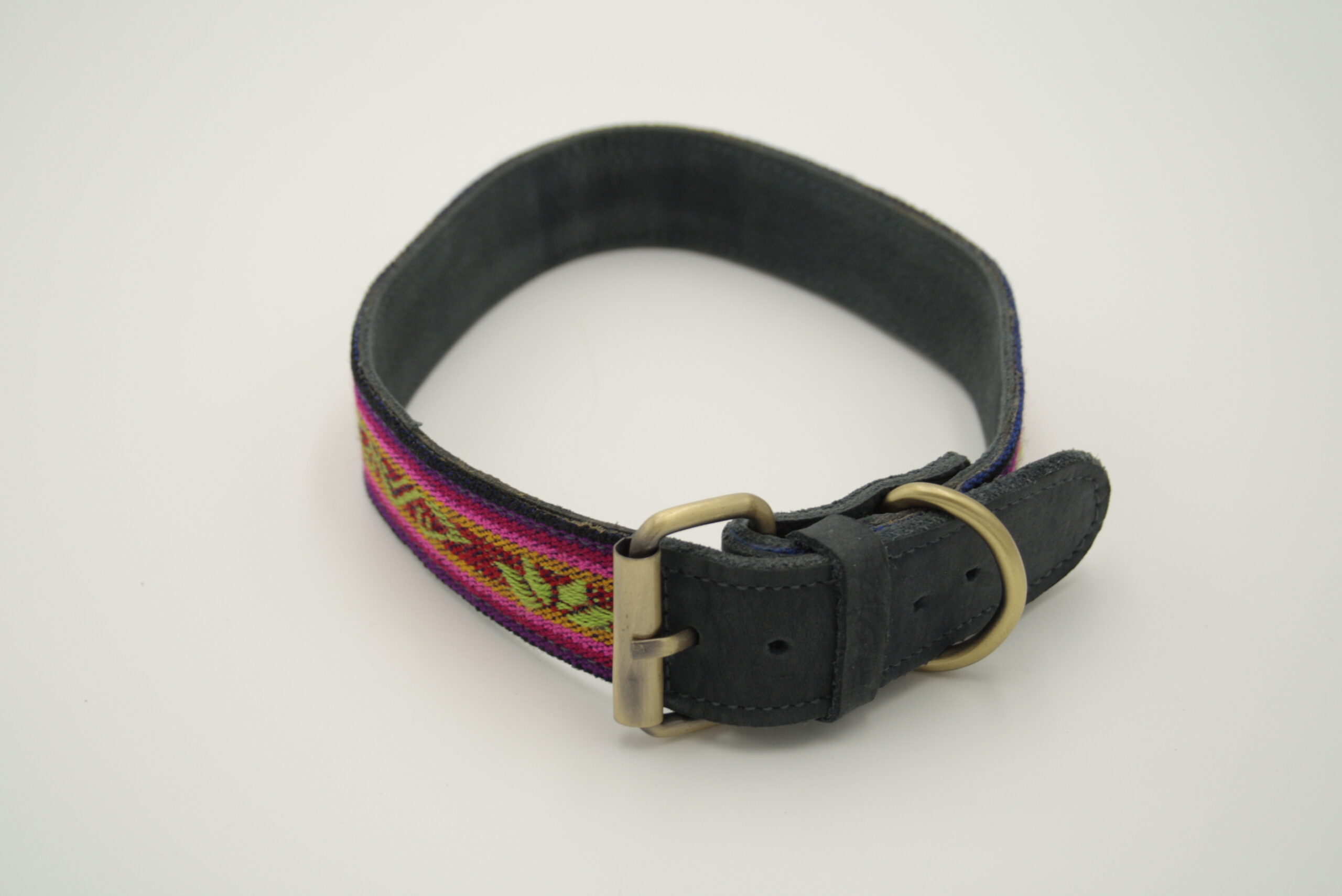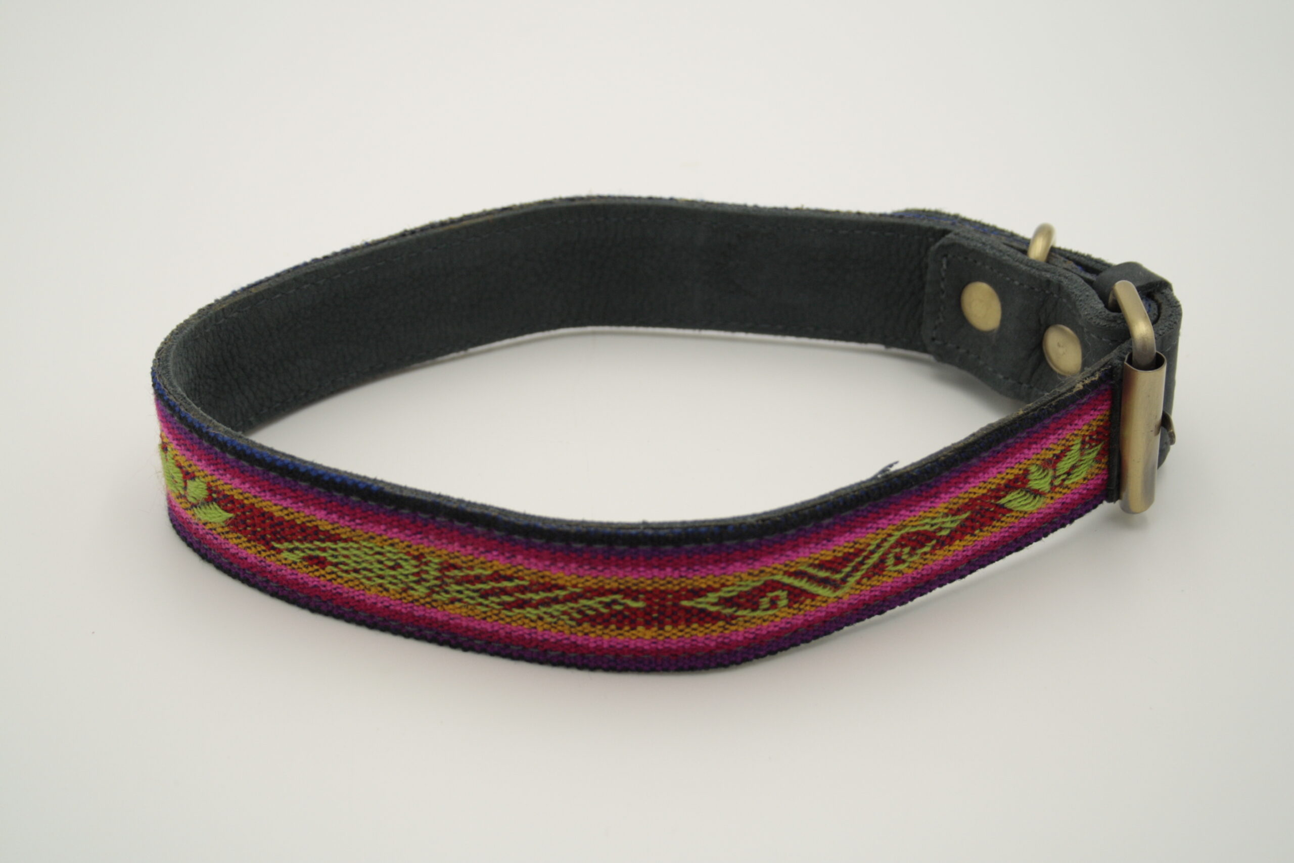 blaues Leder, handgewebter Wollstoff, multicolor ( blau, hell grün, pink, lila ,rot, gelb)
