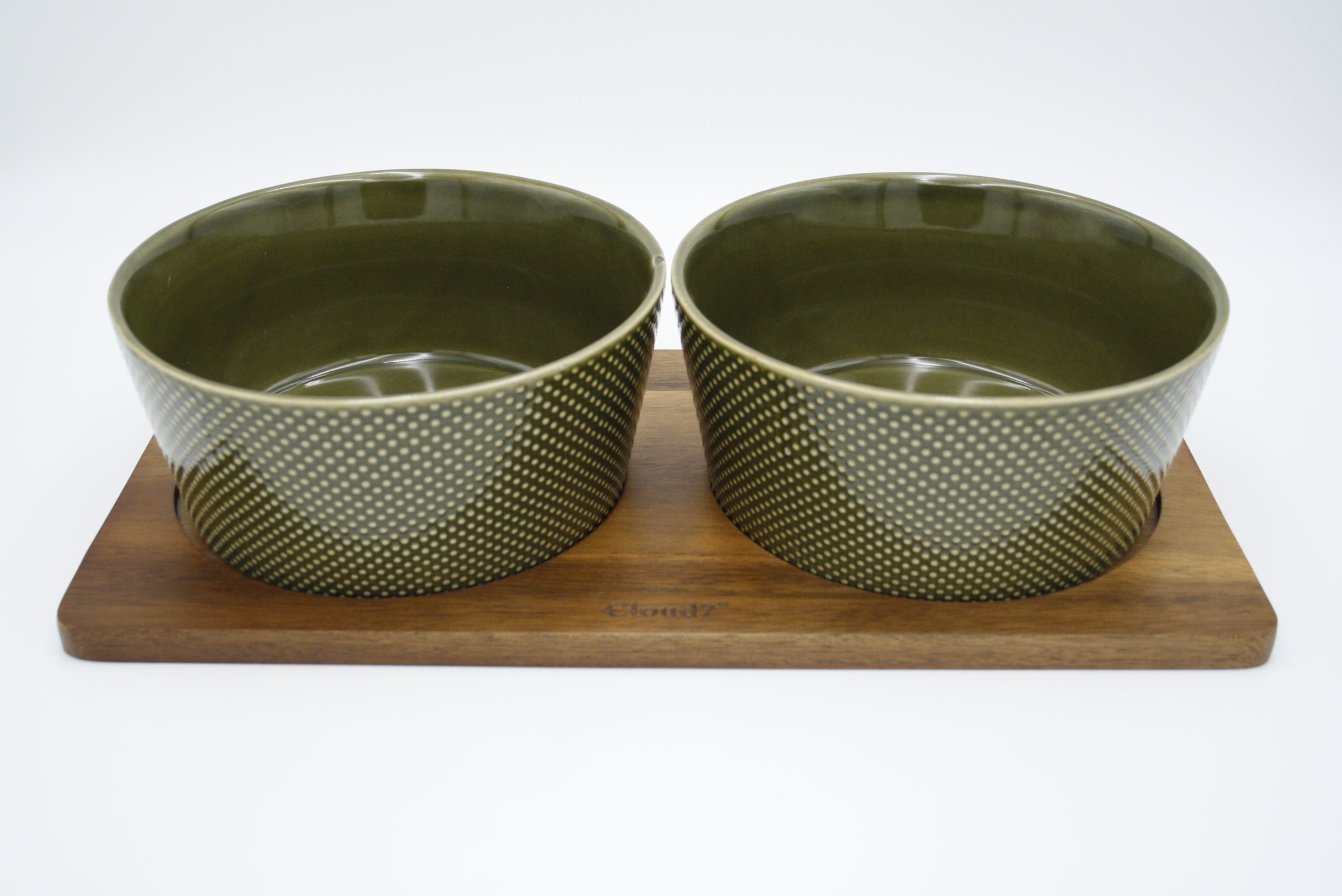 Diese Design Futterstation bestehend aus zwei Keramik Hundenäpfen und Holz-Napfunterlage ist ein Hingucker in jedem Zuhause. Die spülmaschinenfesten Keramik Hundenäpfe in schönem Grün sind dezent und trotzdem besonders im Design: Die gepunktete Struktur sowie die glänzende Lasur untermalen die ästhetische Form des Wassernapfs und Futternapfs. Komplettiert wird das Set mit der hochwertigen Hundenapfunterlage aus edlem Akazienholz. Deren praktischen Einkerbungen sorgen dafür, dass die Hundenäpfe auf der Unterlage nicht verrutschen und sich die Hunde voller Genuss ihrer Mahlzeit hingeben können.